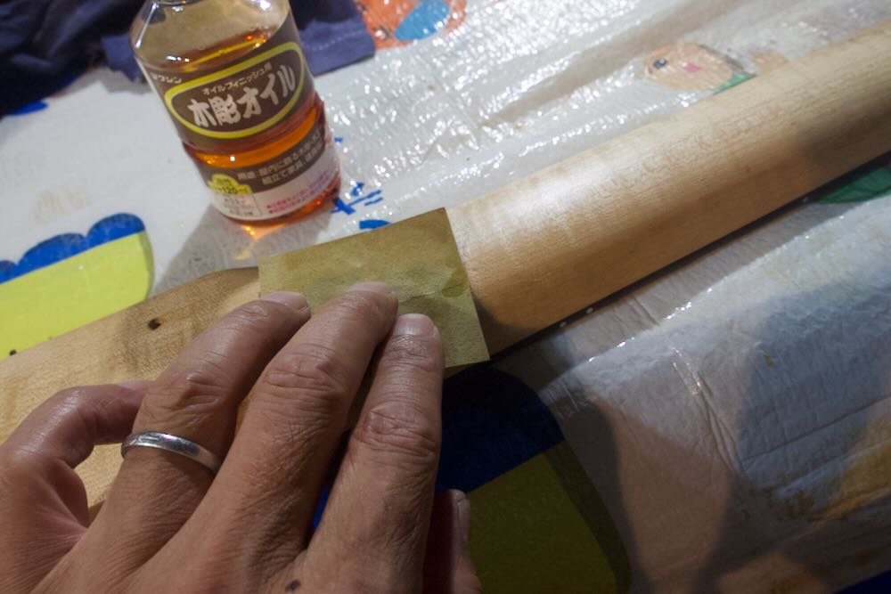 いつもの木彫オイルを塗り込み塗り込み、オイルで水研ぎ。