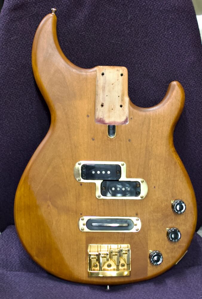 これは、リアについているバータイプのピックアップなのですが、どう見ても、あのヤマハの SC のピックアップですよねぇ?SC のピックアップはもう手放してしまったので、詳しい検証ができないのですが、あまりにもそっくりな見た目。BBと兼用で作られたのか?BBを一番特徴付ける部分の一つがこのピックアップですよね。